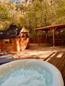 Résultant de la rencontre d’un finlandais et d’un inuit, cet « igloo de bois », hébergement hexagonal doté de deux extensions, vous transportera dans un univers cosy et boisé. Une des extensions recevra l’espace couchage, l’autre la salle de bain. Le kota sera installé sur une terrasse pilotis, en plein milieu des arbres, et notamment des chênes majestueux, donnant l’impression d’y être accrochés.