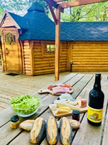 Planches de fromages et charcuterie, salade verte, pain maison.